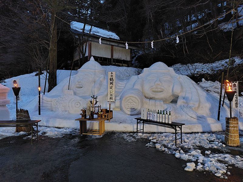 当社ではお祭りのシンボルとして、毎年、大黒様と恵比須様の大きな雪像を奉納しており、